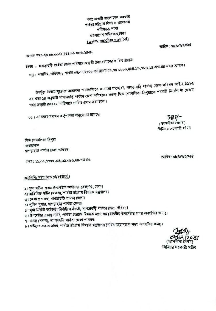 ১। ১০ম পুনর্গঠিত খাগড়াছড়ি পার্বত্য জেলা পরিষদ