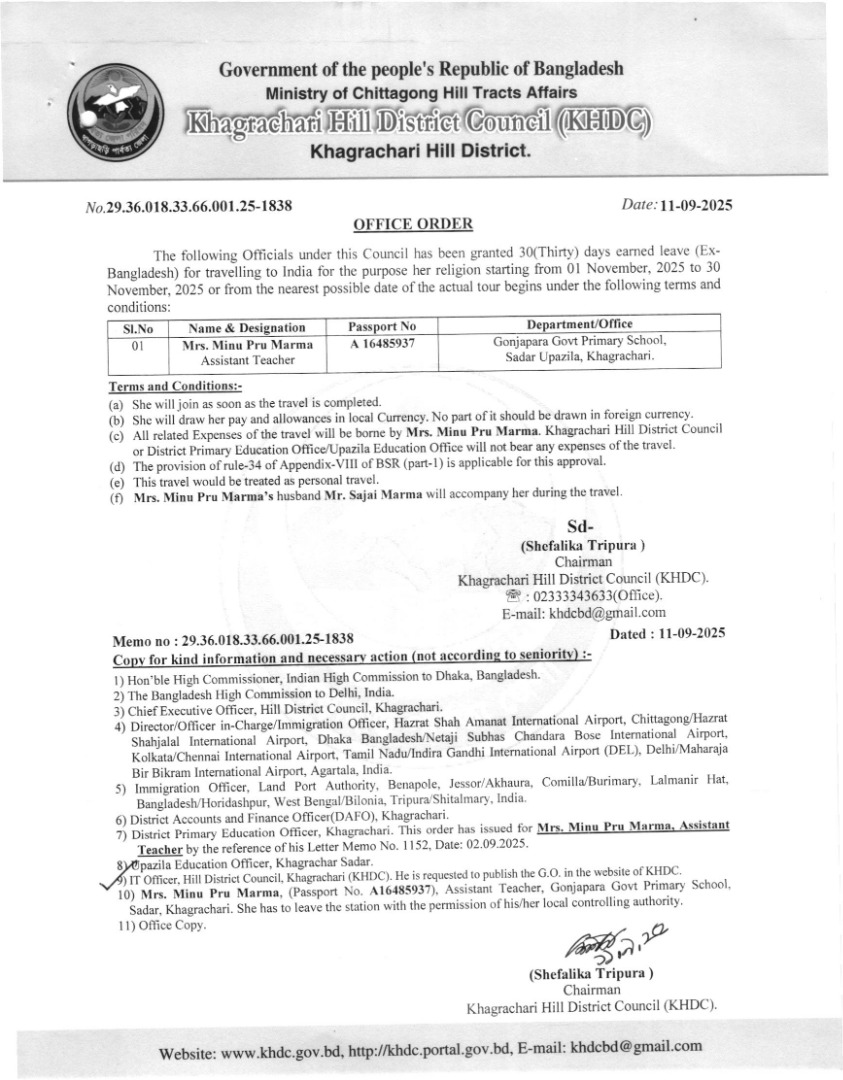 | জনাব প্রভাঙ্কর দেওয়ান | আইটি কর্মকর্তা | পার্বত্য জেলা পরিষদ খাগড়াছড়ি | ডাউনলোড | ২০-১০-২০২৫ |